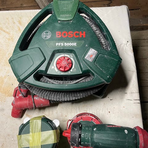 Bosch PFS 5000 E malingssprøyte. Elektrisk sprøytesystem for påføring av maling og lakk på ulike overflater. Enheten består av hovedenhet med slange og håndholdt sprøytepistol. Egnet for bruk til maleprosjekter innendørs og utendørs, som vegger, tak, møbler og andre tre- og metallflater, avhengig av type maling som brukes i systemet. Veldig lite brukt.