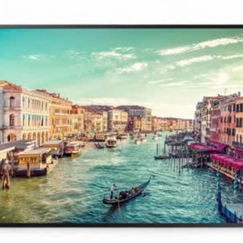 Samsung Q55R en en 55-tommers skjerm for informasjonsvisning og presentasjoner i møterom.