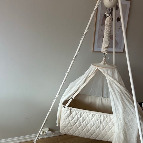 Vurderer å selge moonboon oval vugge med fjær, motor (eldre modell men fungerer som den skal - ingen avvik), oppheng og madrassbeskytter.