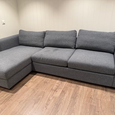 Reservert- Grå hjørnesofa fra Skeidar - må hentes