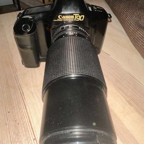 Et fint og teknisk feilfritt Canon T90 analogt speilreflekskamera med Canon FD 50mm 1:1.4 normalobjektiv selges. Kameraet og objektiv har vært på service og kontroll på kameraverksted og fungerer 100%. Det har mattskive med mikroprisme og snittbilde for presis fokusering.