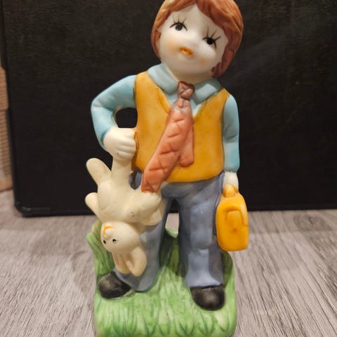 Jeg selger denne sjarmerende figuren i porselen av gutt med hund. Den er fra 1960-tallet.