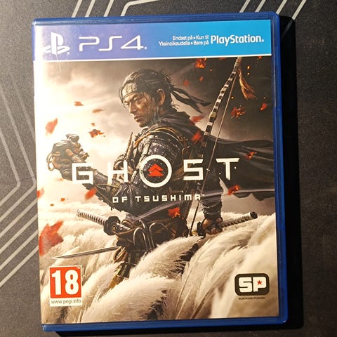 Sony Ghost of Tsushima Playstation 4 spill. Action-eventyrspill på fysisk disk for PS4. Spillet er beregnet for én spiller, med nettverksfunksjoner tilgjengelig. Aldersgrense 18 år ifølge PEGI-merking. Leveres i originalt plastetui med omslag og spillplate for bruk på Playstation 4-konsoll.