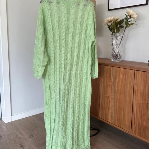 Jeg selger en strikket kjole, 150 kr. Veldig fin og varm for kjølige sommerkvelder. Passer S, M.