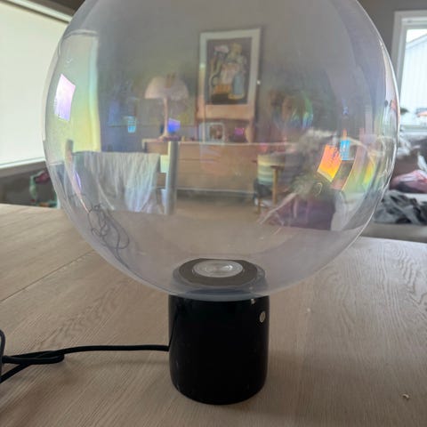 Stone Field bordlampe med sylinderformet sort fot og rund, røykfarget glasskuppel. Lampen er beregnet for innendørs bruk og gir et dempet, dekorativt lys når den brukes med passende lyspære. Passer på bord, skjenk eller nattbord der man ønsker stemningsbelysning. Lyspære inkludert