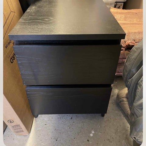Pent brukt nattbord i hvit. Dette er et brukt møbel i god stand, men med en liten skade i lakken oppå som nesten ikke synes (se bilder).