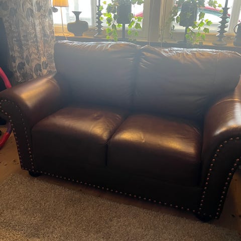Møbler i god stand, men har behov for nytt stoff pga noe slitasje på vangene og solbleking.