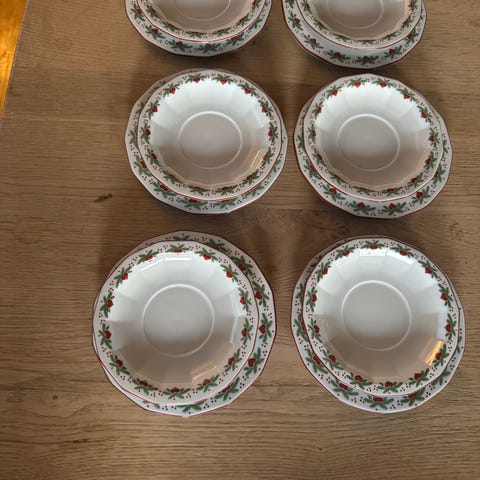 Pent brukt vintage. Normal lett slitasje/alderspreg kan forekomme, spesielt på gullkanten. Ingen synlige nagg eller sprekker (se bilder).