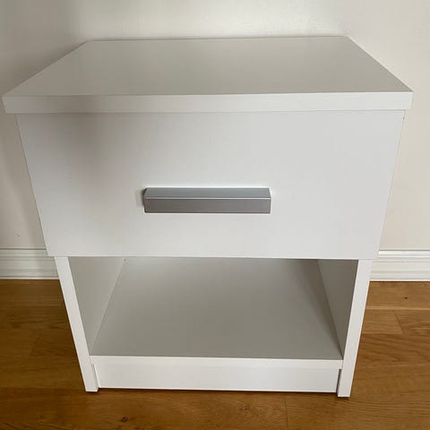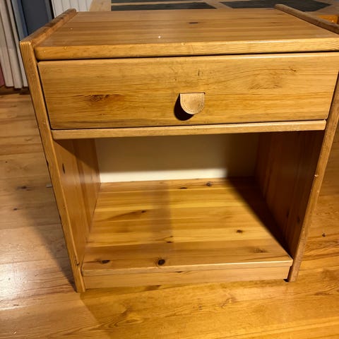 Nattbord i tre (Eik) med skuff og hylle. 2 stykker