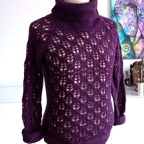 Dame håndstrikket genser i 100% bomull, størrelse 42