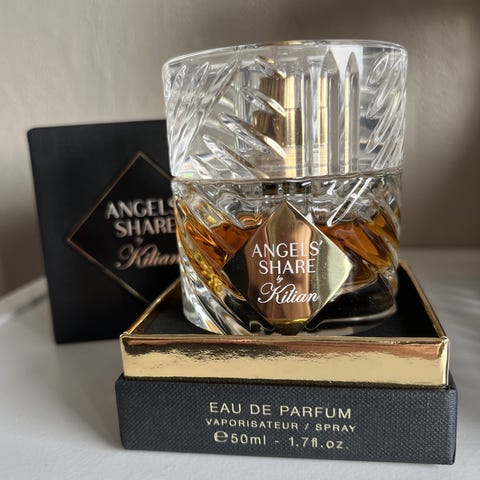 By Kilian Angels’ Share Eau de Parfum unisex. Parfymen har en nydelig duftprofil, og kan brukes av både kvinner og menn. Flasken er 50 ml, men ifølge ChatGPT er det ca 12-13 ml igjen, så denne er perfekt for å teste før en kjøper en full parfyme 😊