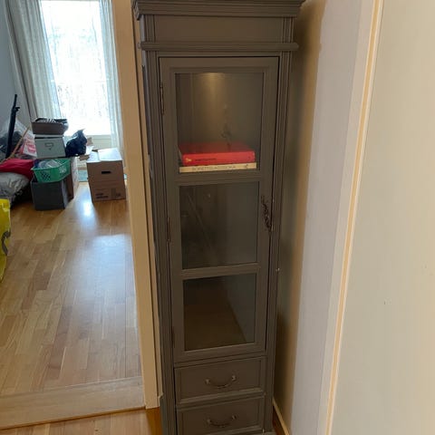 Hvit malt vitrineskap.