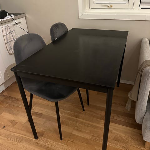 Pent brukt spisebord med 4 stoler – sort