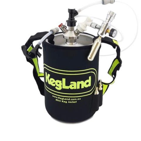 Koblingen er beregnet for bruk med KeyKeg-fat. Utførelsen er i metall med plastdetaljer, egnet for tapping av drikkevarer fra kompatible fat. Produktet leveres med tilhørende dokumentasjon og monteringsanvisning, slik det fremgår av bildene.