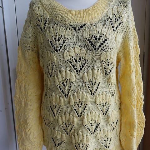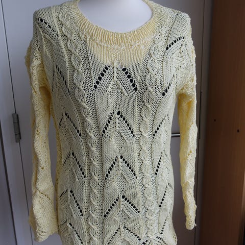 Ny håndstrikket lang dame genser i 100% bomull, størrelse 40.