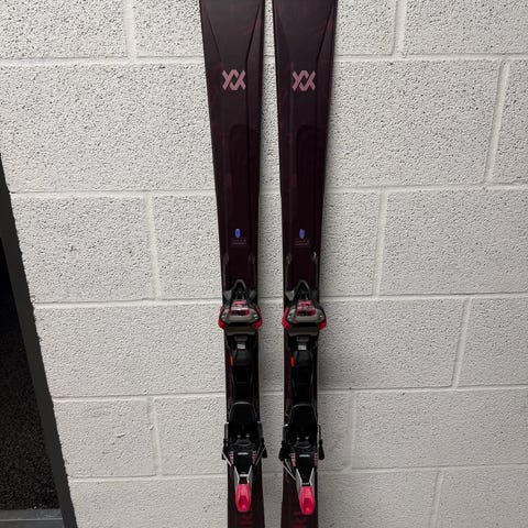 Skiene er brukt 4-5 ganger, og er i god stand. Såle og kanter er pene uten større skader. Bindingene fungerer som de skal.