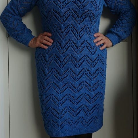 Ny håndstrikket damekjole i 100% mercerisert 8/4 baby bomull