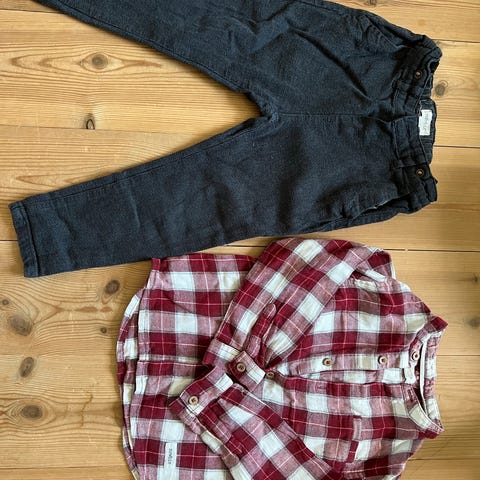 En bukse med seler og to skjorter selges i strl 92. Som nytt, kjøpt av meg.