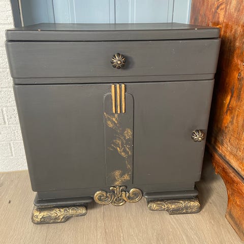 Skap i heltre furu med både toppdel med lokk og nedre skapdel med dør. Naturlig furufinish med synlig trestruktur. Egner seg til oppbevaring. Dørknott har løsnet (se bilde) og må limes på med trelim.