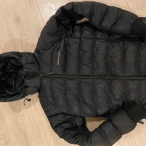 Peak Performance jakke i barnestørrelse 160. Jakken er grønn. Modellen er unisex og har hette, frontlommer med klaff og brystlomme med glidelås. Innsiden er vattert for ekstra isolasjon. Passer til hverdagsbruk og utendørsaktiviteter i kjøligere vær.
