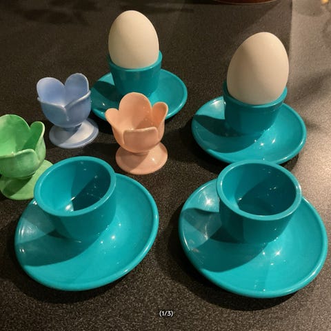 4 Stilige brune keramikk egge glass, 4,3x7,3cm.