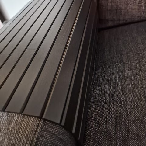 Hvitt bord til armelene på sofa eller lenestol fra skeidar. Har noen svake bruksmerker.