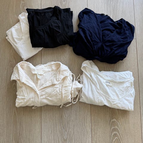 Denne pakken har mye av det man trenger av gravidklær! Mesteparten er fra HM Mama og i str M med mindre annet er oppgitt i bildene.