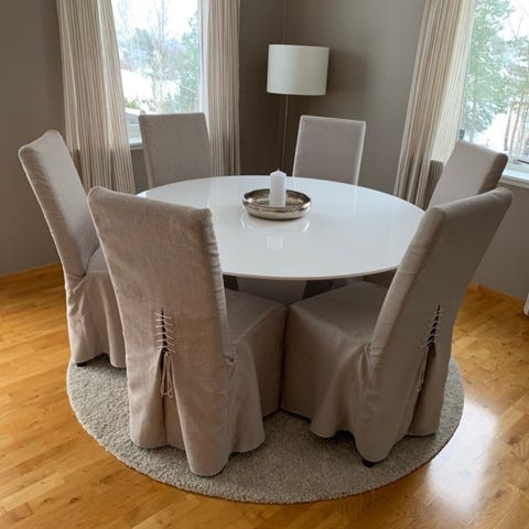 8 stk spisestuestoler lite brukt, kjøpt på fagmøbler selges samlet for kr 6000,- Lys grå trekk og mørke grå ben. Må hentes på Nøtterøy.