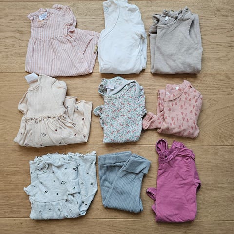 Passer til hverdagsbruk for baby i størrelse 68. Klærne er i lette materialer egnet for innendørs bruk og kan kombineres på flere måter etter behov.