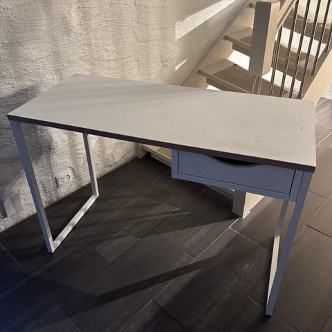 Nydelig eldre bord med skuffe. Brukt som sybord, kan brukes som skrivebord. Ennå mye liv igjen