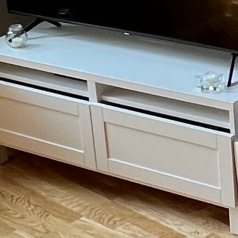 TV-benk ifra IKEA, kjøpt høst 2024. Noen bruksmerker på plate, eller ok stand.