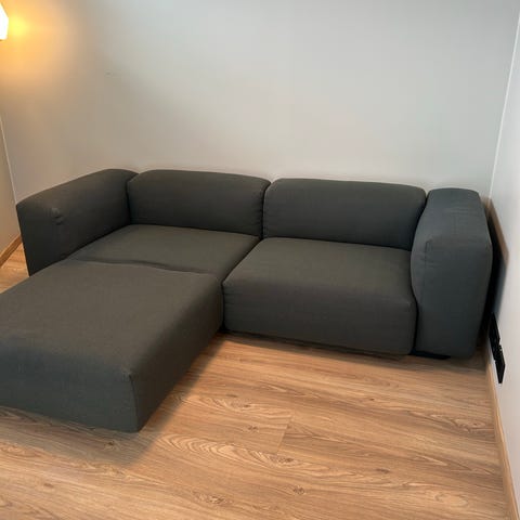 Soft Modular Sofa i et covermaterial som heter som heter Credo og i fargen mother of pearl/black. Sofaen er 4,5 år og fremstår i meget god stand. Har noen få tråder som er kommet opp i setet. Se bilder for nærmere forklaring.