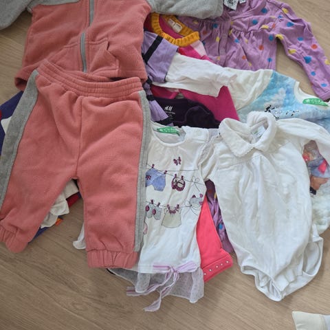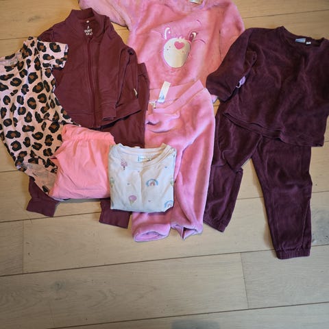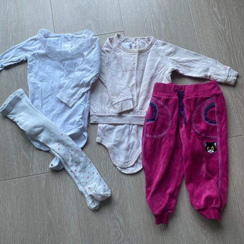 Klespakke jente str 68/74, med flere plagg i ull. Alt er ubrukt/pent brukt. Røyk- og dyrefritt hjem.