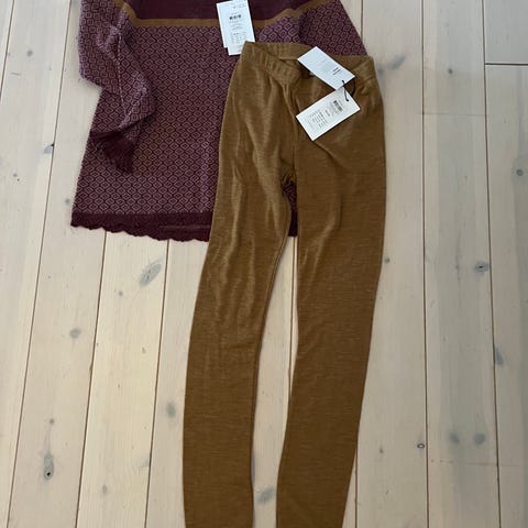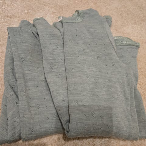 Name it ullsett for jente i størrelse 140. Sett i ull med flerfarget blomsterprint. Overdel med blondekant i halsen og matchende ullbukse. Egnet som innerlag eller pysjamas på kjøligere dager.