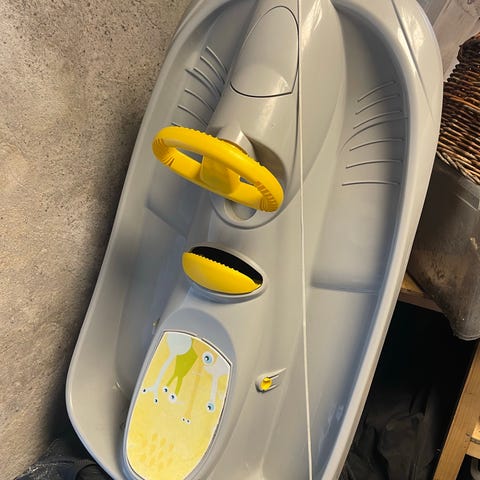Akebrett har ratt og bremser for å kontrollere fart og retning. I bra stand. Hentas i Spjelkavik