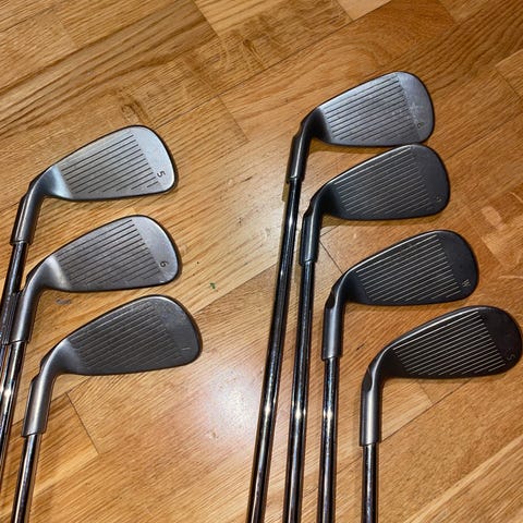 Pent brukt T150 jernsett (4-P). Brukt 1 sesong. Liten skramme på 6’er, ellers alle fine (vedlagt bilde).