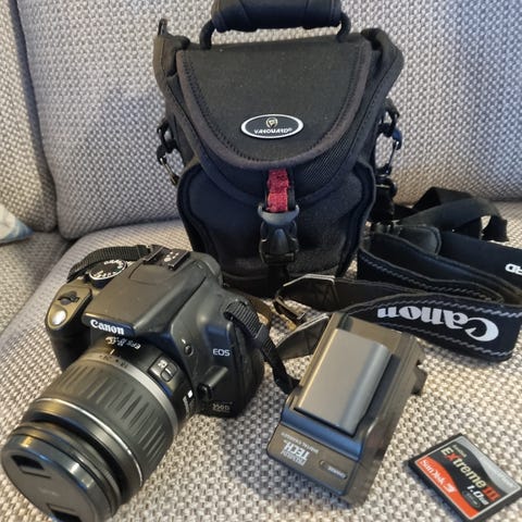 2 Canon kameraer med batterier og ladere og vesker for 1200 kr. Som du ser på bildene. Kan sendes