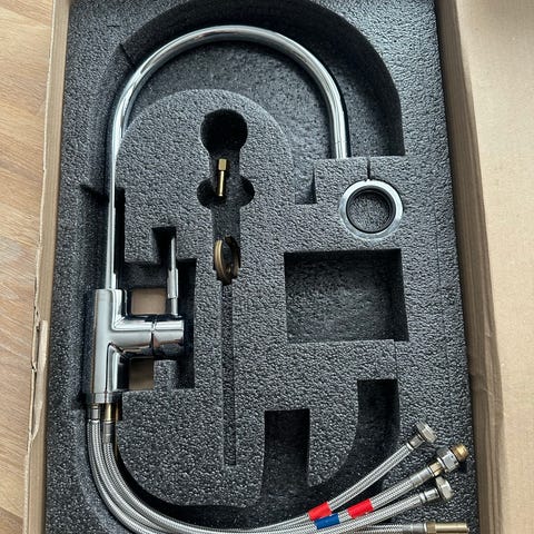 Krom servantbatteri med fleksible tilkoblingsslanger høy type