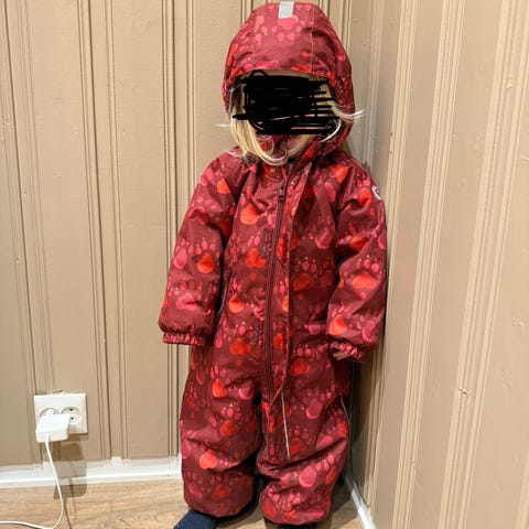 Reima kjeledress for barn i størrelse 86. Dobbel Glidelås foran gjør den enkel å ta av og på. Leveres med matchende votter og fotposer/overbooties i samme materiale og farge. Vottene er i str 1 og fotposene i str 2. brukt av 1 barn og kjøpt ny av meg. kommer fra røyk og dyrefritt hjem.