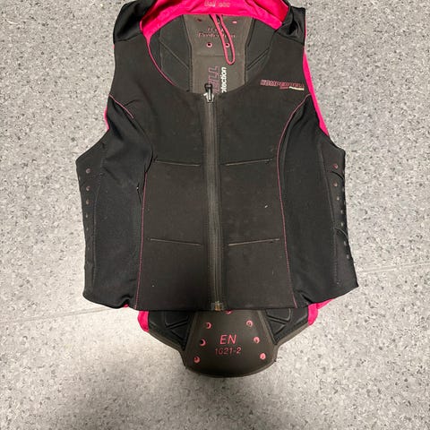 Modellen er laget som kroppsnær vest med glidelås foran. Farge svart med rosa detaljer. Godkjent etter EN 1621-2:2014 for ryggbeskyttelse. Egnet som beskyttelse ved ridning eller annen aktivitet der ekstra ryggbeskyttelse er ønskelig.