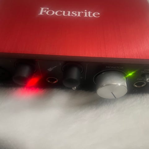 Focusrite Scarlett 2i2 lydgrensesnitt i rød farge.
