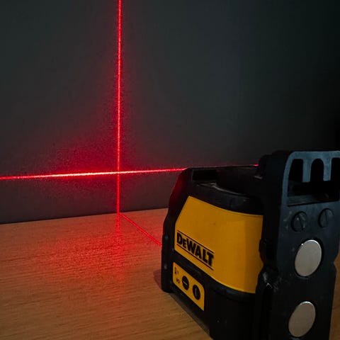 DeWalt krysslaser selvnivellerende med rekkevidde opptil 20 meter. Leveres i robust koffert med oppbevaringsplass for laser og tilbehør. Laseren projiserer røde krysslinjer for horisontal og vertikal nivellering. Egnet for innendørs og utendørs arbeid som montering av hyller, kjøkken, fliser og annet arbeid som krever nøyaktig oppretting. Kjøpt Montér butikken Hamar, kun brukt tre ganger, er som ny.