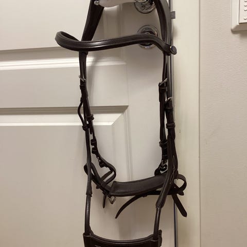 PS og Sweden high jump hodelag, I brunt lær som vist på privat bilde. Bilde som viser svart hodelag er fra nettside, og kun for å vise utforming på hodelaget.