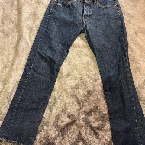 Levi's 501 jeans for herre i blå denim. Buksen er i størrelse W30 L34 og er laget av bomull. Klassisk femlommers modell med knappelukking i gylfen og skinnlapp med logo bak i linningen. Passer til hverdagsbruk og kan kombineres med ulike overdeler for et enkelt og tidløst uttrykk.