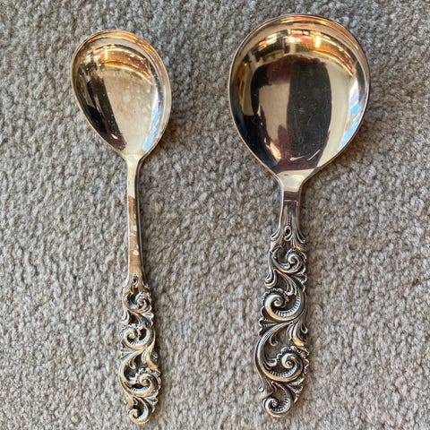 To kakeskjeer i Telesølv selges samlet, kan sendes om kjøper betaler for porto.