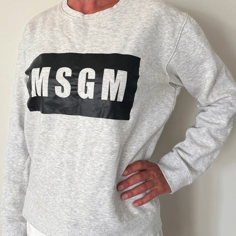 Gobmi unisex collegegenser i hvit farge med brodert motiv på brystet. Genseren har rund hals med ribbestrikket kant, samt ribb nederst og på ermene. Passer som en enkel og behagelig hverdagsgenser. Materialet laget av tung bomullskvalitet. Noch oversized passform. Noe misfarget på halskrage