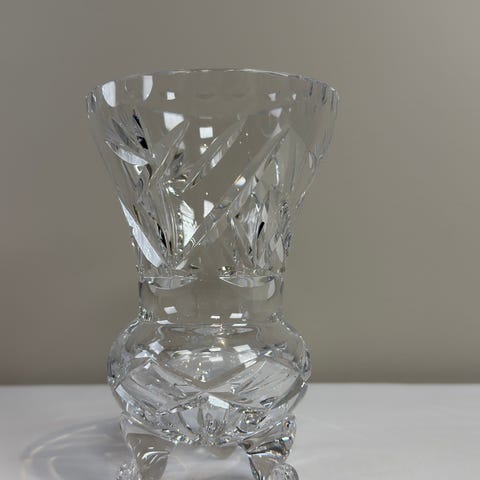 Vintage krystallvase trolig Magnor 1950–60-tall – tung, gravert dekor