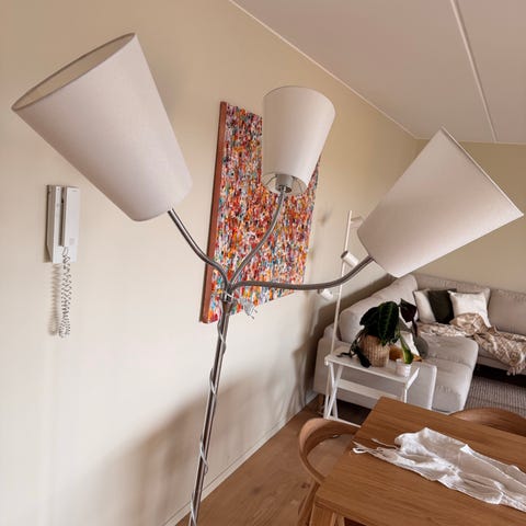 Selger en fin stålampe, da vi ikke bruker den😊 Litt usikker hvor den er fra, fikk den i gave. Kan vende hodene forskjellige veier. Den ka ikke dimmes