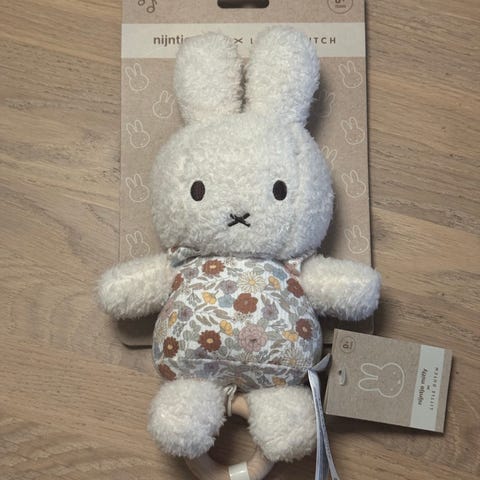 Finn AI: Teddykompaniet Miffy babyrangle i myk plysh. Rangle med Miffy-kaninfigur og ringformet grep i rosa farge, tilpasset små barnehender. Egnet som sanseleke for spedbarn og småbarn. Laget i mykt tekstilmateriale med innebygd ranglelyd. Oppfyller CE og EN71 sikkerhetsstandarder for leker.