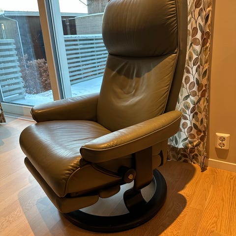 Selger denne stressless pga den ble for stor. Philip (M) signatur stol Hud paloma 44 dark mushroom Beisfarge 05 sort understell 45 matt sort ny pris kr 20 000 har kvittering ble kjøpt i 2025